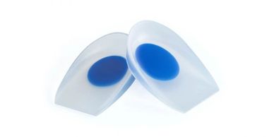 The Powerstep Gel Heel Cups are made of 100% silicone to offer shock absorption, pressure relief, and pain relief, from sore heels. They provide soft support with each step, including a blue dot which provides extra softness for the heel strike. These orthotics are ideal for heel spurs, fat pad atrophy, plantar fasciitis, foot, heel, knee and back pain.