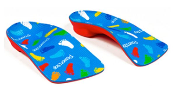 This product is designed for kids with a similar fit and function of custom made products. The fabric covered Poron top layer provides a durable shock-absorption and cushion for extended comfort, while the firm EVA base is durable and supportive for activewear. The two degree medial heel post and deep heel cup provide rear-foot stability and extra motion control by properly positioning and cramming the heel. There is also a built in arch to lift and support the arch, restoring proper alignment to the mid-foot and forefoot. This product is in a 3/4 length design and the top cover fabric has microbial qualities to reduce heat and friction, and is printed in a fun design for kids.