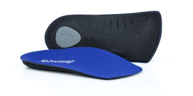 This product is designed to fit many styles of shoes and has a relief area in the heel filled with poron cushioning. It also has neutral posts and a polypropylene shell encased by medical grade foam. The Powerstep Protect 3/4 orthotic enhances comfort from the heel to the metatarsal heads, and the polyester fabric top cover reduces friction and moisture.